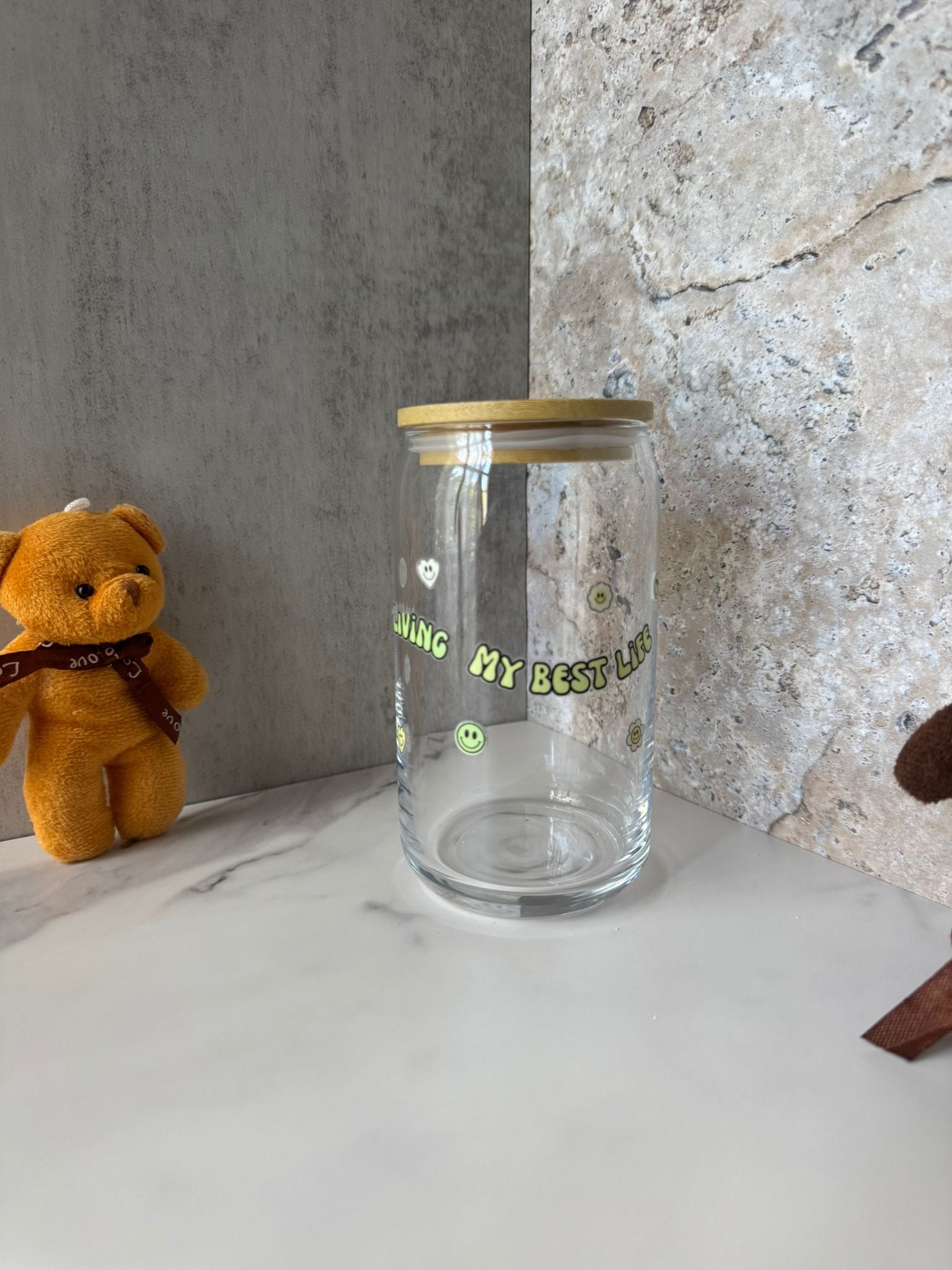 Sip in style and good vibes. This 16 oz glass cup features the uplifting phrase “Living My Best Life” in a sleek UV DTF design — perfect for those who radiate positivity and confidence. Whether it’s iced coffee, matcha, or a fruity refresher, this cup is your daily reminder to enjoy the little things.