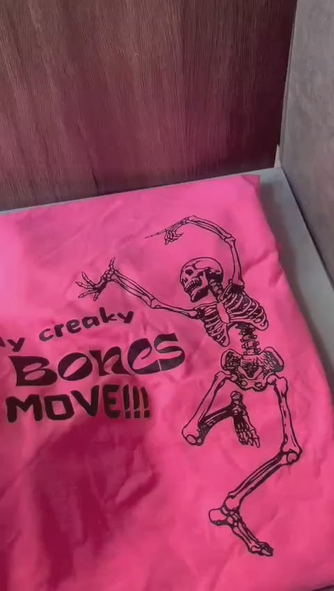 Get into the spooky spirit with a dose of humor! This Halloween t-shirt features the fun and relatable phrase “My Creaky Bones Move” — perfect for anyone who feels every snap, crackle, and pop when they stand up! Whether you're dancing through haunted houses or just making your way to the couch, this tee brings the laughs and the Halloween vibes.